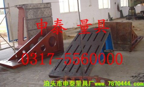- 我廠主打的鑄鐵彎板的種類很多,有直角彎板、彎板工作臺、檢驗彎板、T型槽彎板,主要用于零部件的檢測和機械加工中的裝夾,主要用于檢驗、安裝機床機械的垂直面檢查,檢驗工件的90°角。